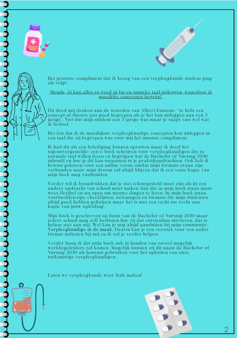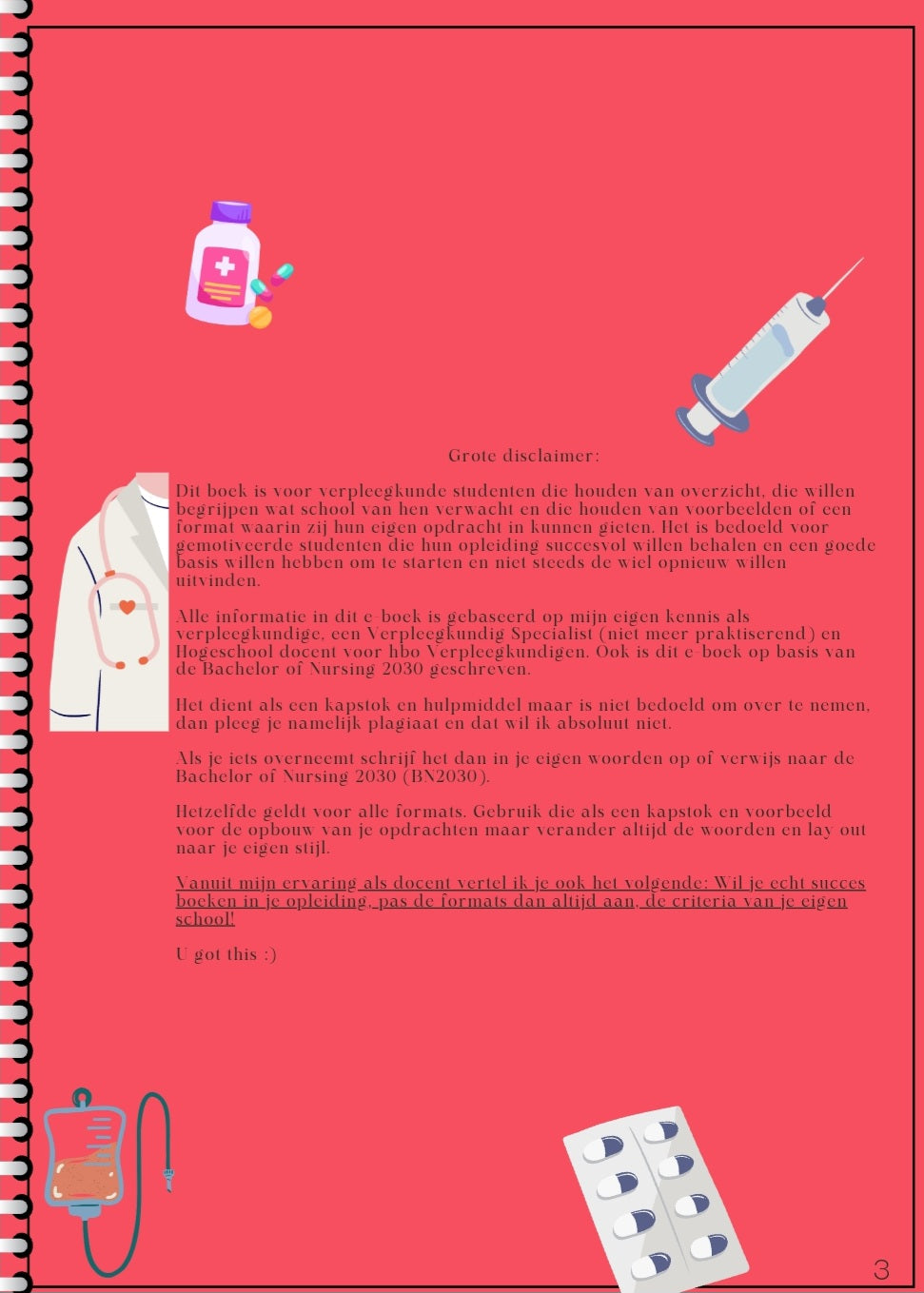 Dan is dit interactieve e-boek met in totaal 104 pagina's vol is precies wat je nodig hebt! Gemaakt door een ervaren verpleegkundige, verpleegkundig specialist (Niet meer Praktiserend) en hogeschooldocent, biedt dit boek je concrete, direct bruikbare formats en templates die je studie zoveel makkelijker maken.